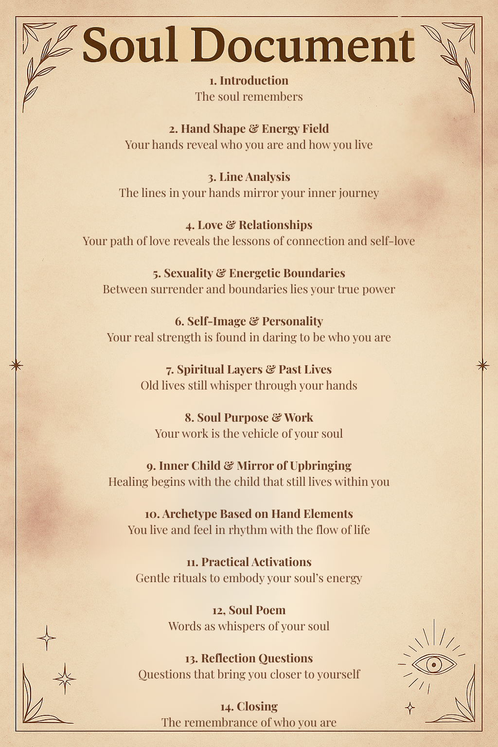 This is a soul document — intuitively written based on your hands, your face, and your birth date.